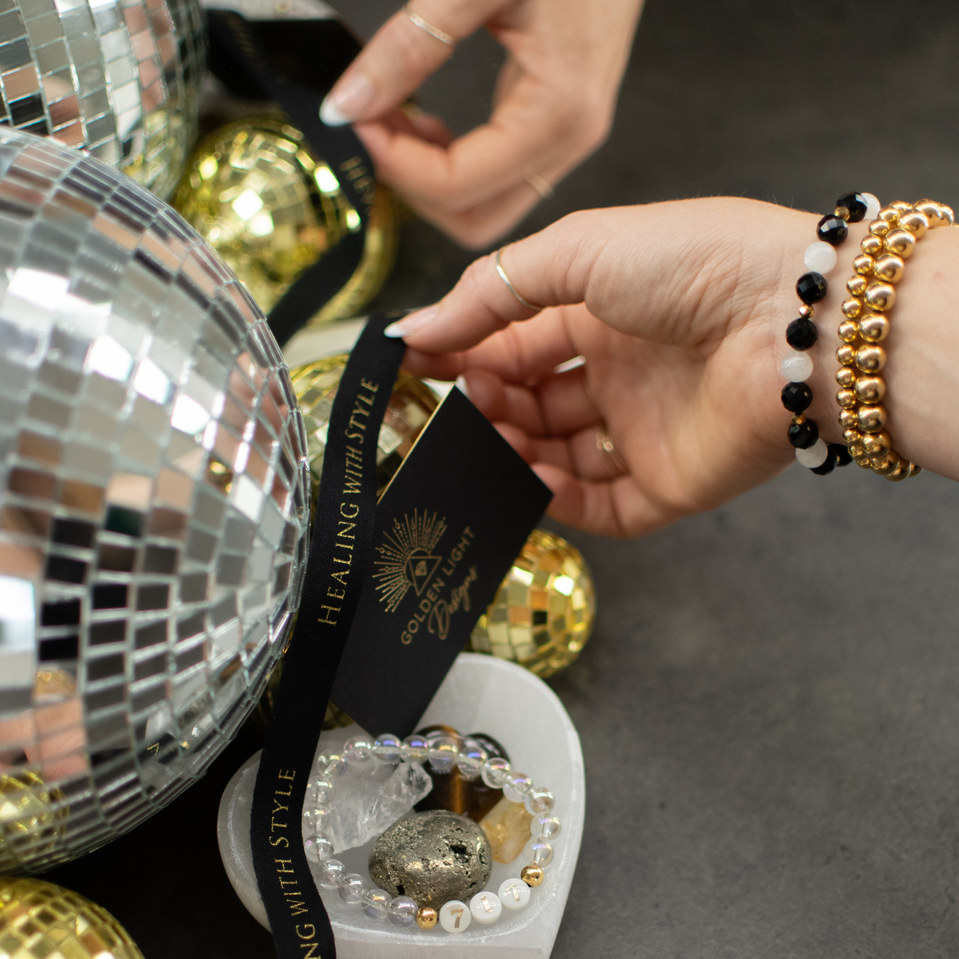 · This 'Cheerful Night' bracelet will allow you to usher in the new year with balanced and revitalized energy. Welcoming in new beginnings, experiences, hope and inspiration.