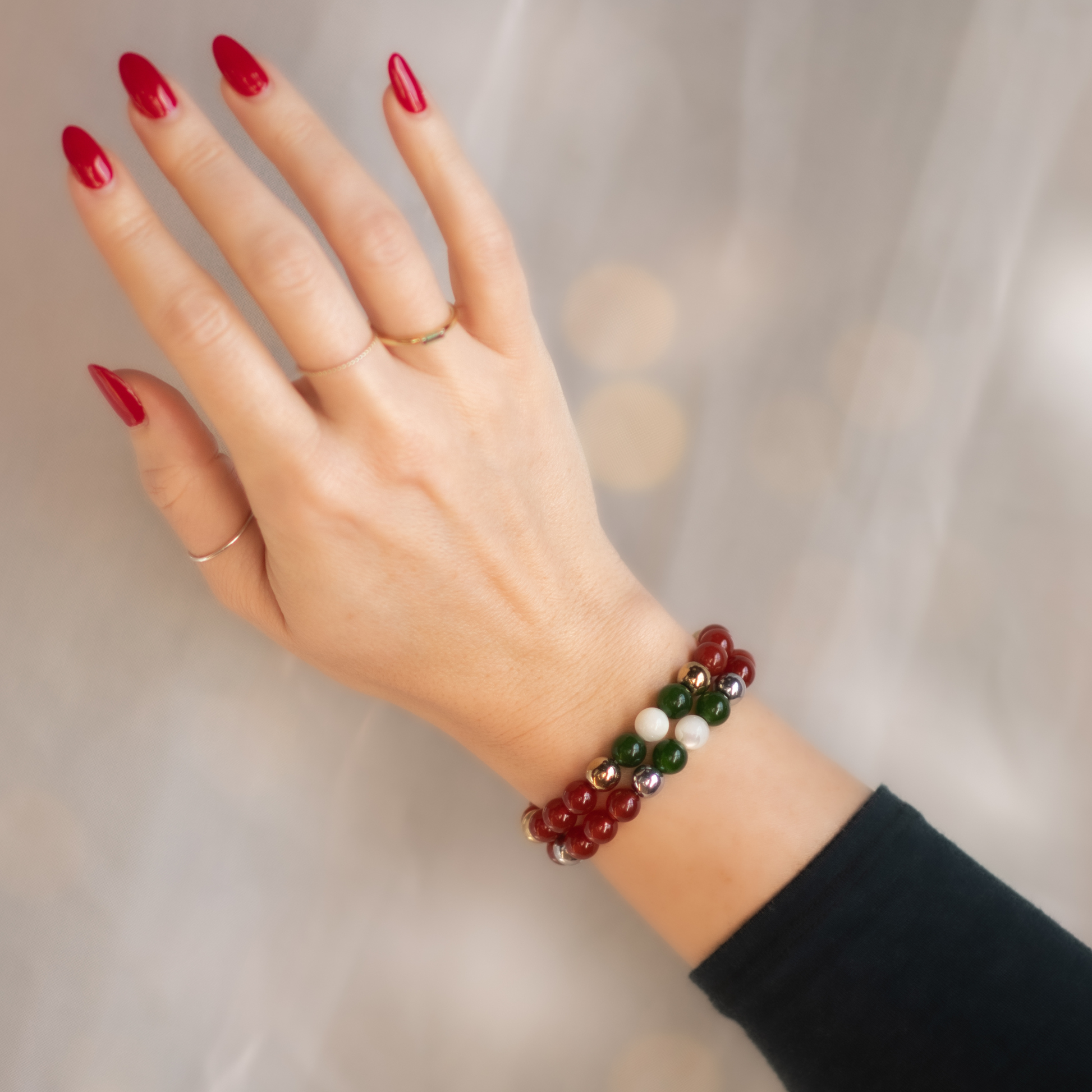 · This 'Jolly' bracelet will allow you to radiate joy, embrace self-love and enjoy the holidays in harmony with yourself and others.